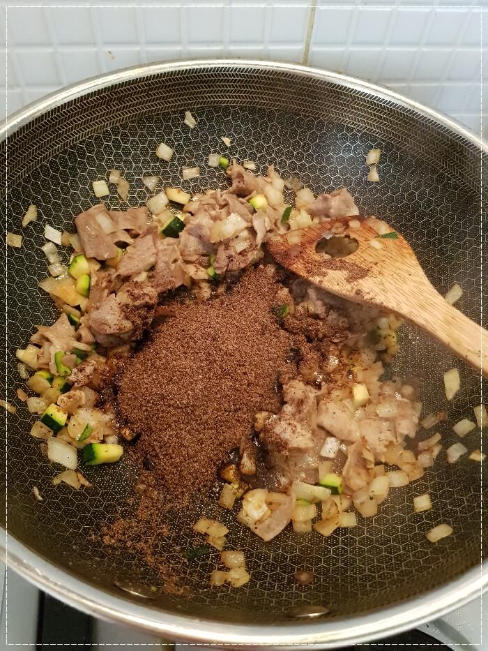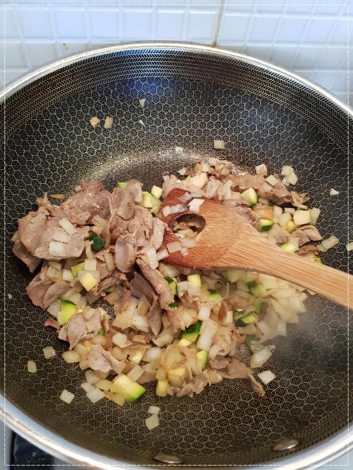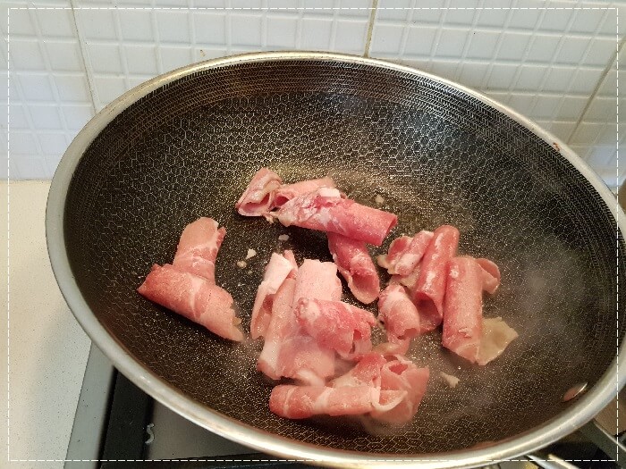 돼지고기를 완전히 익혀줍니다.