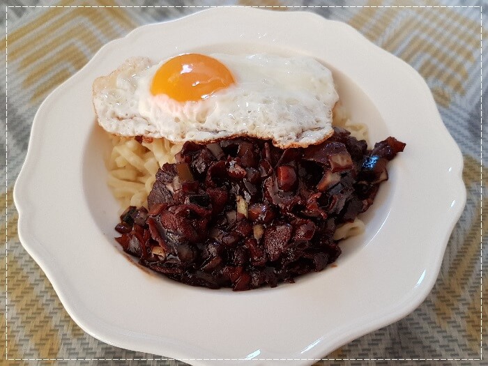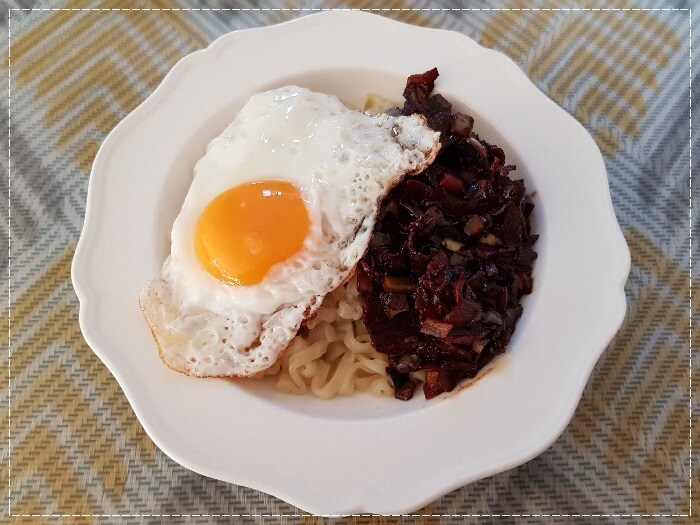 그릇에 면과 짜장 소스, 반숙 계란을 올려주세요.